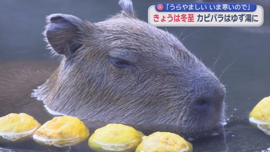 元祖カピバラの露天風呂に伊豆産のゆず1.5キロを入れて…目を細めて温まる「カピバ...