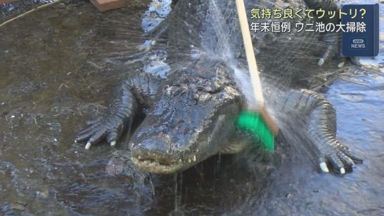 年末恒例 新年に向けてワニ池の大掃除 静岡・東伊豆町「熱川バナナワニ園」