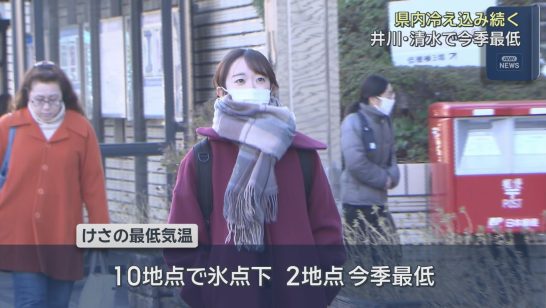 23日の静岡県内も厳しい冷え込み 9つの観測地点で今季最低を記録