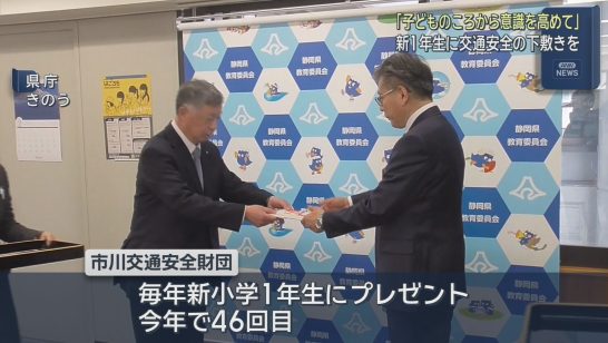 卒園ひかえた園児に向け自動車販売会社が交通事故防止に反射材1000個を贈呈 静岡...