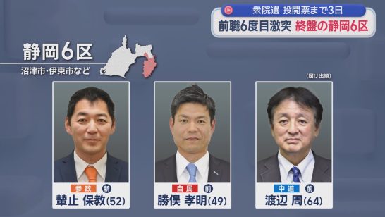 【静岡3区】前回と構図一変 再度激突は中道と自民の2人 共産12年ぶり候補擁立、...