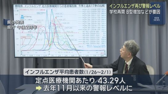 静岡県内のインフルエンザの患者数注意報レベルに 記録が残る2006年以降3番目に...