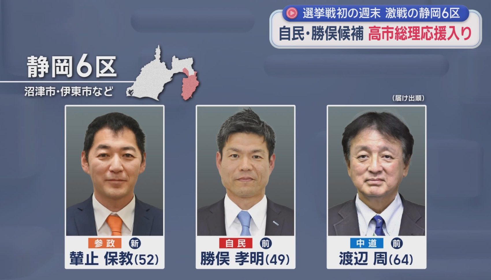 【静岡7区】当選7回・現職大臣の牙城に挑む女性2人…11年の市議経験の国民新人と...