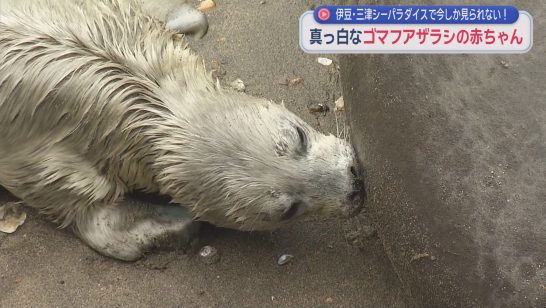 見られるのは今だけ…「すっごく可愛い」白い産毛のゴマフアザラシの赤ちゃん 静岡・...