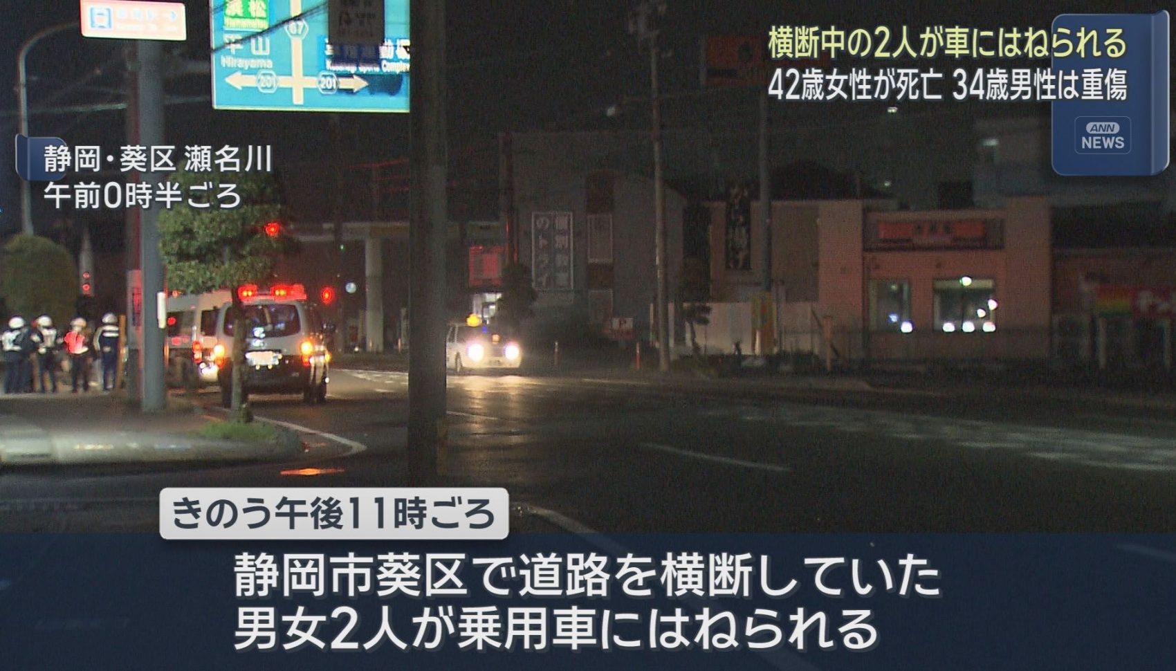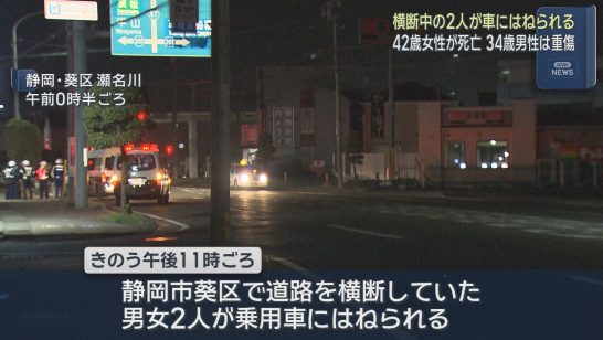 道路を横断していた歩行者2人が乗用車にはねられ1人が死亡 静岡市葵区