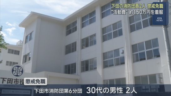 活動費合わせておよそ150万円を着服 静岡・下田市の消防団員の男性2人が懲戒免職