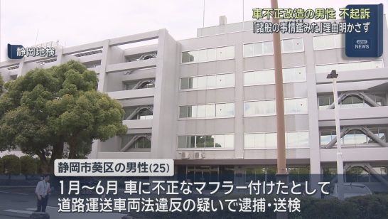 車に不正なマフラーを取り付ける改造をした疑いで逮捕された男性を不起訴処分 静岡地...