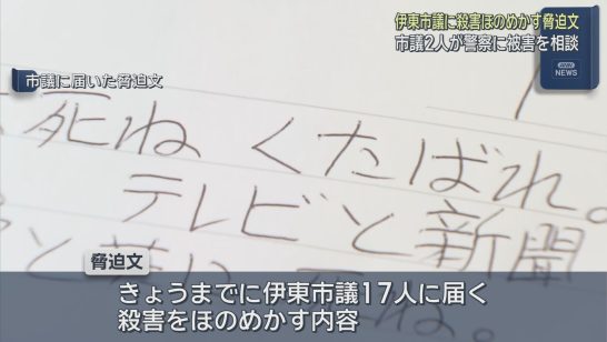 静岡県の伊東市議2人が警察に被害を相談 殺害をほのめかす脅迫文が届いたことを受け