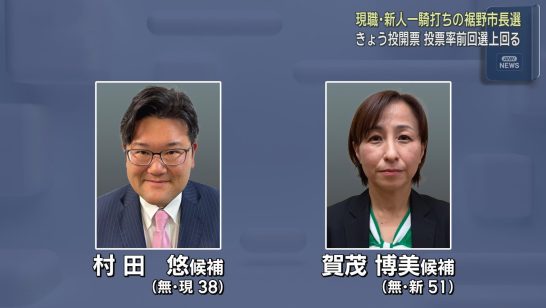 静岡・裾野市長選 現職の村田悠さんが新人候補におよそ3000票差をつけ2度目の当...