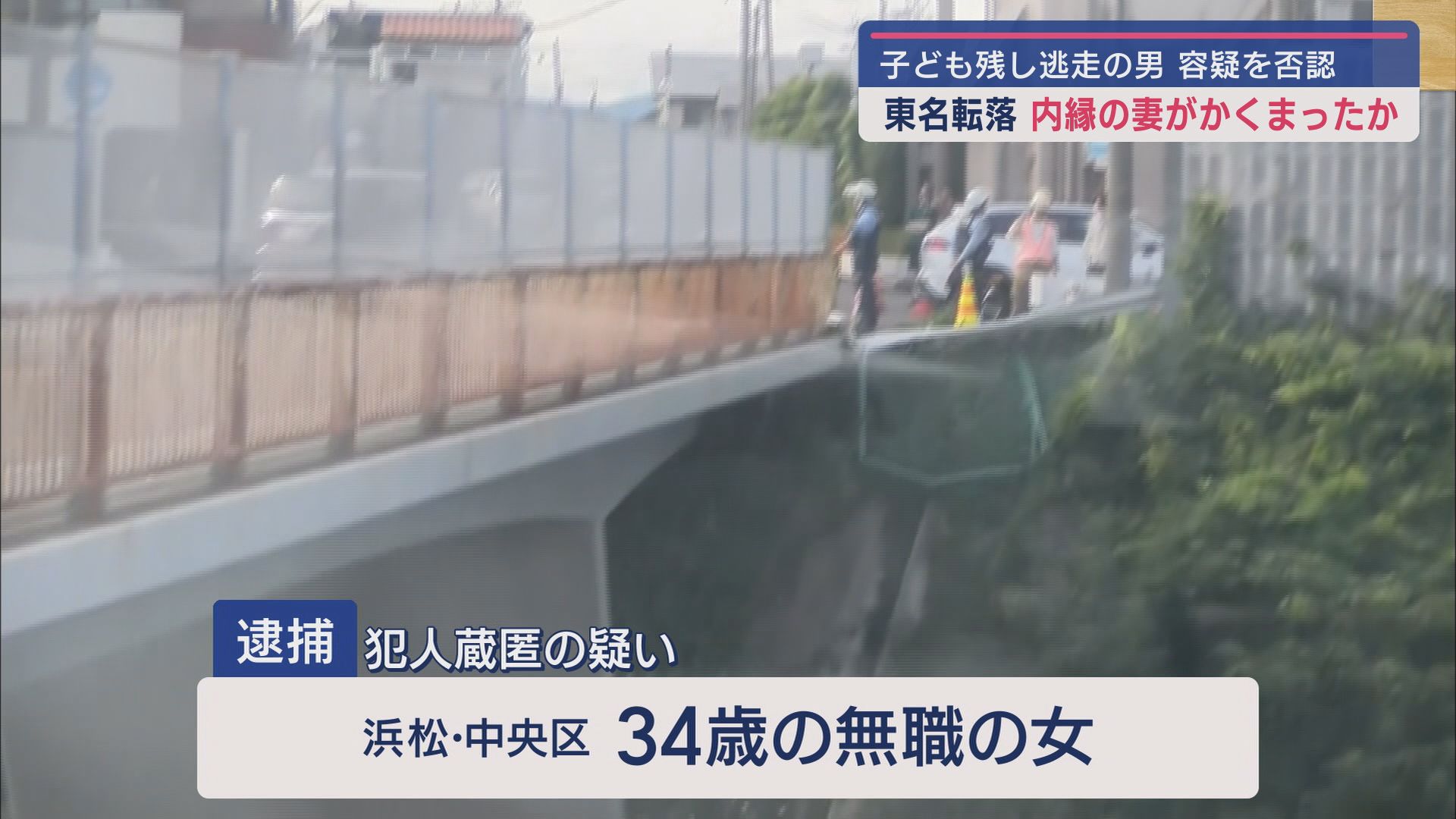 東名高速に転落した車に子どもを残して逃走した男。その男をかくまったとして、今度は内縁の妻が逮捕されました。