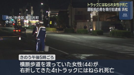 横断歩道を渡っていた44歳の女性がはねられ死亡 4tトラックの運転手の男(54)...
