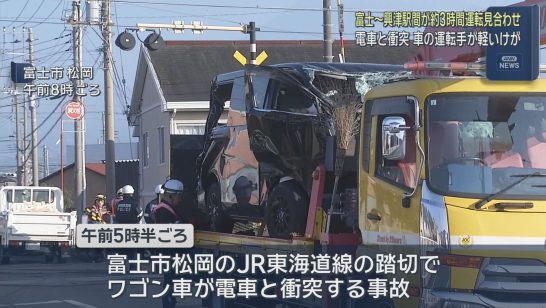 【映像】踏切内で列車とワゴン車が衝突…JR東海道線が一部区間で3時間運転見合わせ...
