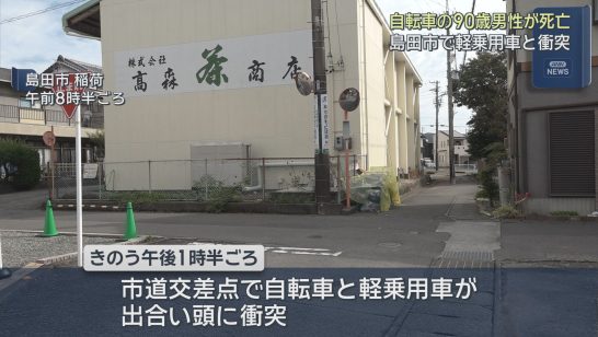 静岡・島田市の交差点で自転車と軽乗用車が出合い頭に衝突 自転車に乗っていた90歳...