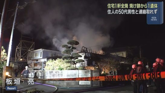 静岡・伊豆の国市で住宅1棟を焼く火事 1人の遺体が見つかる この家に住む男性か