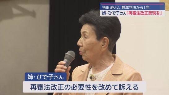 袴田巌さんの無罪判決から1年の集会が静岡市で開かれ、姉のひで子さんが再審法の改正...
