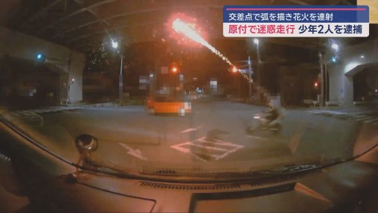原付バイクで交差点を渦巻き走行…手持ち花火を連射 2人の少年を逮捕 静岡市清水区
