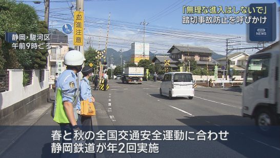 静岡市で踏切事故の防止を呼びかけるキャンペーン 秋の全国交通安全運動に合わせ静岡...