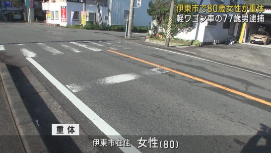 横断歩道を渡っていた80歳の女性が77歳の男が運転する軽ワゴン車にはねられ重体に...