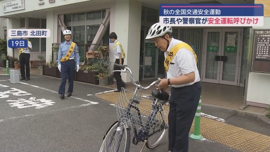 秋の全国交通安全運動 市長が自転車に乗りヘルメット着用の大切さを訴える 静岡・三...