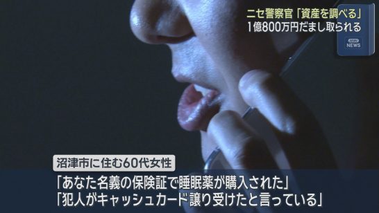 60代女性が1億800万円だましとられる ニセ警察官や検察官「犯罪に関わっている...