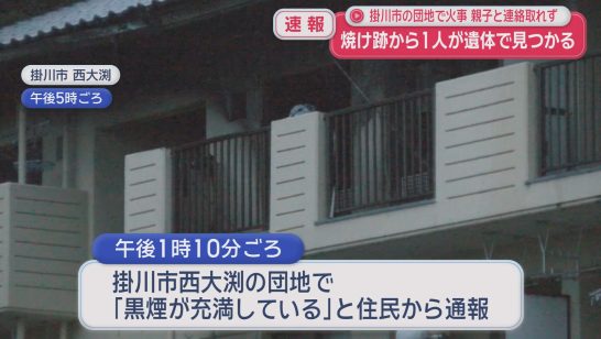 静岡・掛川市の団地で火事 焼け跡から1人の遺体を発見 この部屋に住む親子と連絡取...