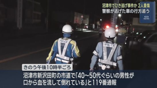 警察がひき逃げ事件として捜査 沼津市の市道で50代の男女2人が倒れているのが見つ...