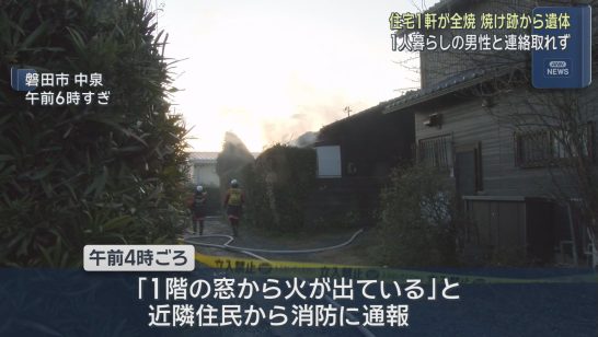 静岡・磐田市で住宅が全焼する火事 焼け跡から1人の遺体 この家の70代男性と連絡...