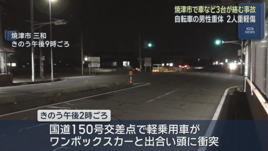静岡・焼津市で車2台と電動アシスト自転車が衝突 自転車に乗っていた87歳の男性が...