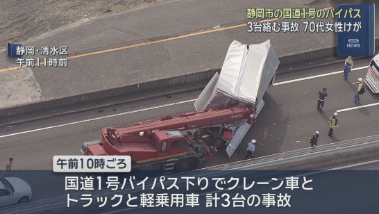静岡市の国道1号バイパス下りで複数の車が絡む事故 70代の女性が軽いけが