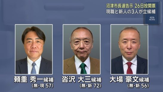 19日告示の沼津市長選 3人が名乗りを上げ、8年ぶりの選挙戦に 争点は?