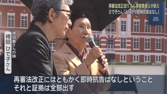 袴田巌さんの姉・ひで子さんがえん罪被害者を救える再審法への改正を訴える 都内での...