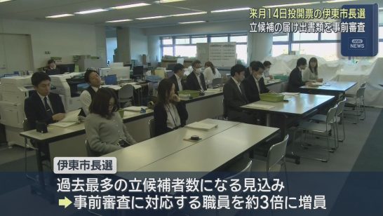 静岡・伊東市長選挙を前に市役所では届出書類の事前審査が始まる 10陣営ほどが実施...