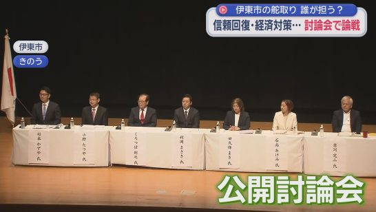 立候補を表明した7人による公開討論会 テーマは市の展望や観光業など 静岡県伊東市...