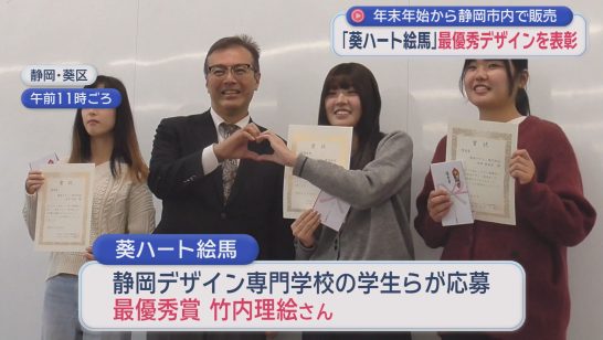 年末年始に販売される「葵ハート絵馬」 静岡デザイン専門学校の竹内理絵さんのデザイ...