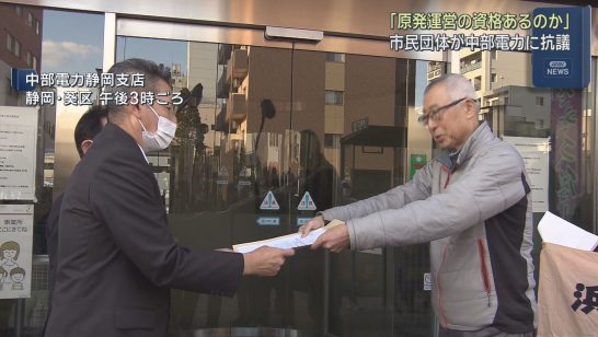 浜岡原発の不適切データ問題で市民団体が中部電力に抗議し浜岡原発の廃炉などを求める