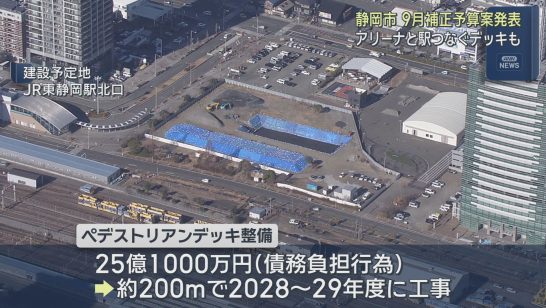 9月補正予算案にアリーナのペデストリアンデッキ整備費とJR清水駅前の製油所跡地の...