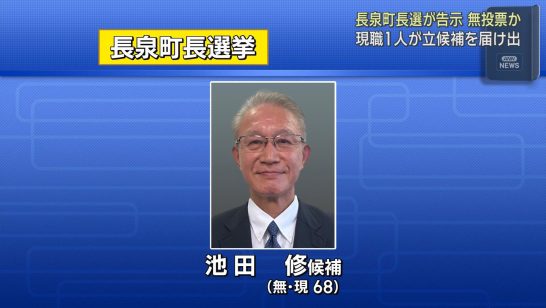 静岡県長泉町の町長選挙は現職の池田修氏が無投票で3回目の当選決める