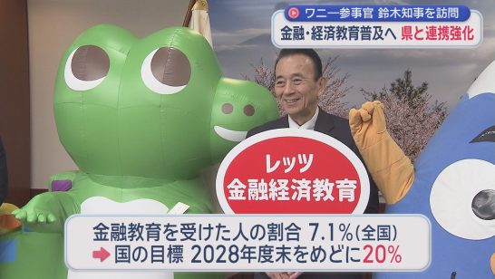 金融庁の公式キャラクター「ワニー参事官」が静岡県庁を訪問 金融経済教育推進に向け