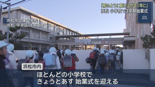 「馬のように駆け上がる一年に」浜松市内の多くの小学校で3学期が始まる