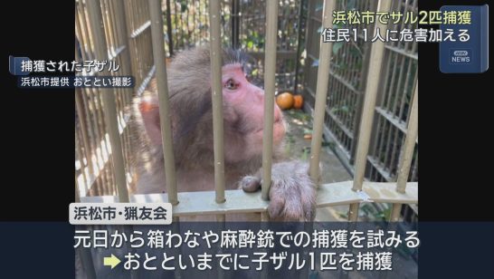 これまでに11人がけが 野生のサル2匹を捕獲 かみつきザルの親子か? 浜松市