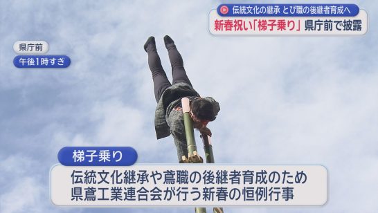 新春恒例の梯子乗りを静岡県庁前で披露 技が決まるたびに大きな歓声