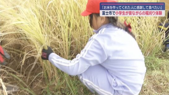 小学生が鎌を使った昔ながらの稲刈りを体験 静岡・富士市立東小学校