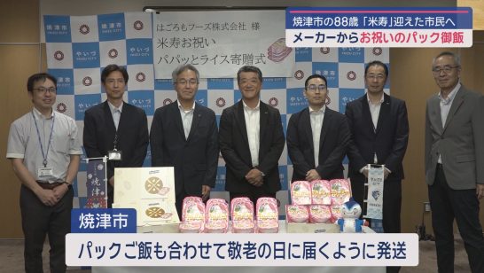 88歳の米寿を迎える市民にはごろもフーズが「パパっとライス」を贈呈 静岡・焼津市