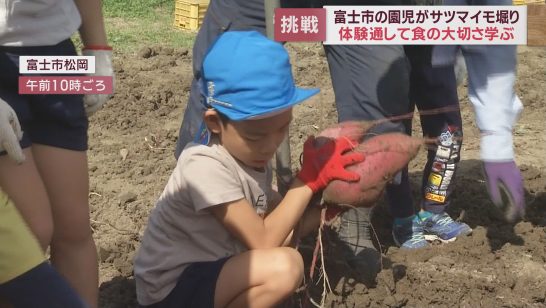 自分の顔くらいある大きな芋に『悪戦苦闘』 園児がサツマイモの収穫体験 静岡・富士...