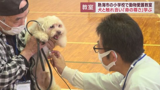 犬の心音を聞いて「命の尊さ」学ぶ 静岡・熱海市 伊豆山小学校