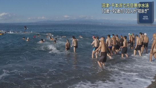 恒例の元旦寒中水泳 10歳から92歳まで130人が参加し初泳ぎ 静岡・沼津市