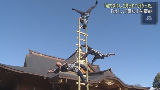 「皆さまが笑顔で過ごせる1年に」富知六所浅間神社で「はしご乗り」を奉納 静岡・富...