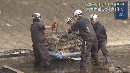 大学生が絶滅危惧種ニホンウナギの保全活動 玉石と竹ですみかとなる石倉かごを設置 ...