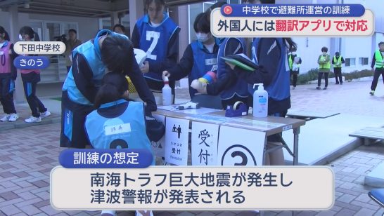 障害者や外国人ら災害弱者への対応を学ぶ避難所の運営訓練 静岡・下田市立下田中学校
