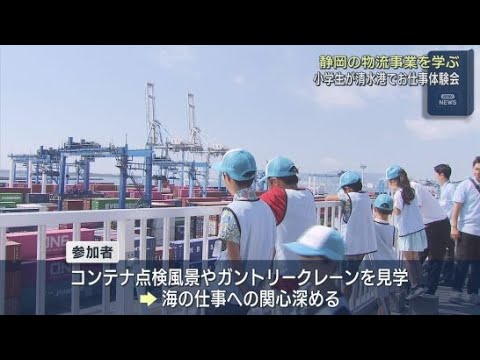 夏休みの小学生が清水港のコンテナターミナルで物流の仕事を体験 静岡市清水区 2025年8月20日 水 曜 8:44 夏休みの小学生が清水港のコンテナターミナルで物流の仕事を体験しました。 このイベントは日本財団「海と日本プロジェクト」の一環として実施され、親子7組、15人が参加しました。 会では物流会社「鈴与」の担当者が児童に静岡の物流事業を解説しました。 その後、児童は輸送されるコンテナの点検の様子や見上げるほど大きいガントリークレーンを見学していました。